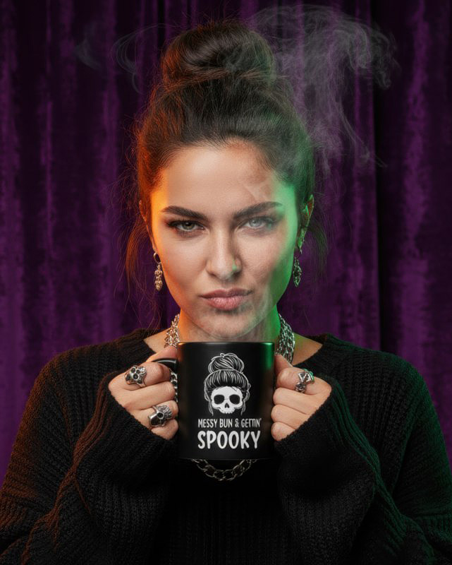Messy Bun Skull Mug | Funny Halloween Coffee Cup | Goth Mom …$19.95 $24.95Price range: $19.95 through $24.95